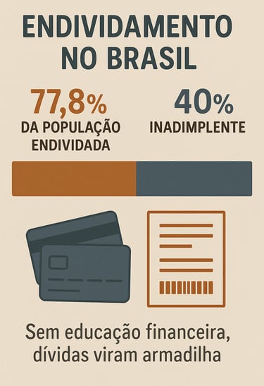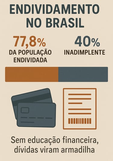 Pesquisa destaca que cerca de 77,8% da população brasileira está endividada, e 40% é inadimplente (BRENO PERRUCHO, 2024). Esses dados mostram a fragilidade da saúde financeira do país. Muitos entrevistados associaram endividamento a algo exclusivamente negativo, mas não compreenderam que, se bem administrado, o crédito pode ser um aliado no planejamento financeiro.