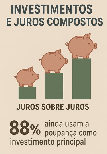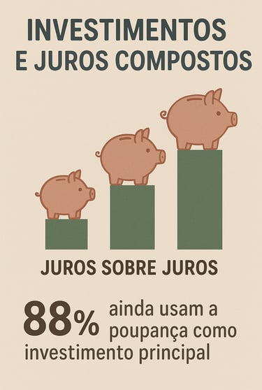 Outro dado relevante é que 88% dos brasileiros ainda utilizam a poupança como principal forma de investimento, mesmo sabendo que ela rende pouco e muitas vezes perde para a inflação (BRENO PERRUCHO, 2024). Isso revela um comportamento conservador e pouco informado, em contraste com a existência de produtos simples e seguros que oferecem maiores retornos, como CDBs e Tesouro Direto.